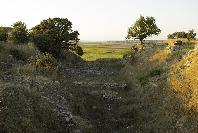 The sun sets over farmer’s fields now but in the Bronze Age, circa 1200 BCE, this was a harbor on the Aegean Sea. I can imagine Greek ships in the distance.