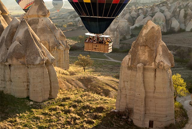 During the day we hiked the valleys and explored the caves, and then on one special day, very early in the morning, we got into a hot air balloon and rose into the dawn over the lunar landscape for one of the most memorable experiences of our lives. We were not the only ones. No less than 60 balloons rise on a typical morning. Each balloon carries around 20 passengers so there are hundreds of gleeful souls floating in the morning mist bobbing in and out of valleys and soaring high in the sky. After an hour or two the pilot puts down gently in a wheat field, ours expertly dropped his craft right into the transport trailer. Champagne for all at the end of a great flight!