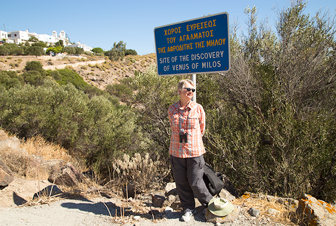 One world-famous and shapely rock is the statue, Venus de Milo. That well-rounded and armless synonym for beauty was discovered here. Technically the marble for the statue was quarried from nearby Paros but the lady stood here in ancient Milos around 100 BCE, it is thought, as decor for a gymnasium. For centuries it remained buried until discovered by a Greek farmer then stolen away by the French in 1820 and relocated to the Louvre in Paris. There is very nice replica in the Milos Archeological Museum.