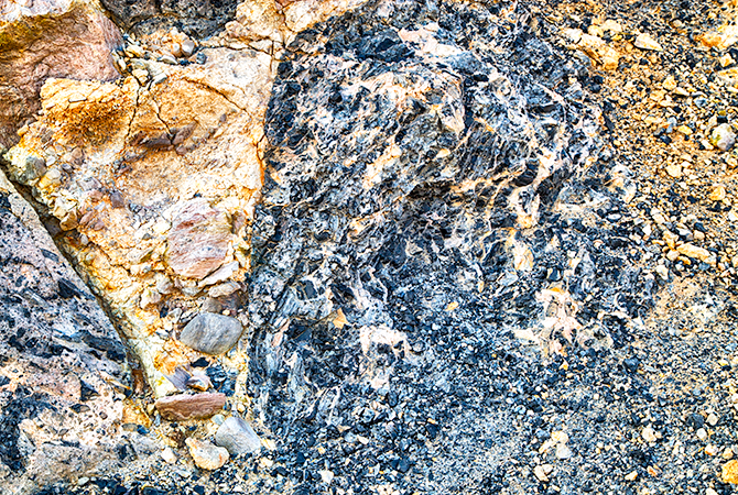 Close up of chips of black volcanic glass or obsidian. Milos obsidian was traded across the Aegean 15,000 years ago.