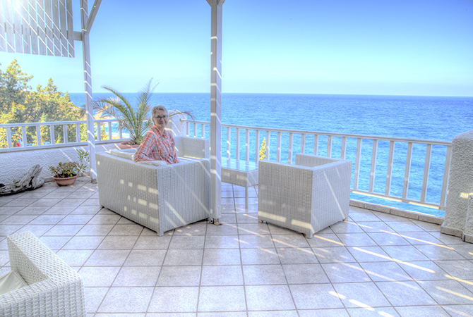 Why do we like Ikaria? I don’t know, maybe because it seems authentically small town Greek and laid back. It’s a carefree, upbeat place where people watch out for one another. It is beautiful. Our inexpensive room at the Cavos Bay Hotel is perched right over the Aegean Sea. Joanne loved watching the intensely blue, clear water. It is easy and fun to exercise. By the end of each day we’d walked many kilometers and done some strenuous hill climbing but we didn’t mind. Here, at the end of the trail at a small Taverna (restaurant) there awaits a fresh Greek salad, fragrant sourdough bread and grilled seafood. Nearby some Swiss tourists have pushed aside the tables and are attempting some Greek dancing. Maybe they’ve found the secret for longevity too.