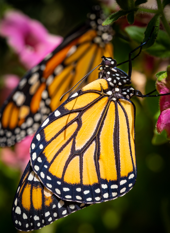 Adult Monarchs hang around in the north throughout the summer but the last butterflies occupying northern territories start south again in September.  These Monarchs are different, bigger and stronger than their summer parents.  How Monarchs navigate the world and how super-Monarchs, the ones that fly south, get bigger are among the questions entomologists, amateur and professional, ponder.