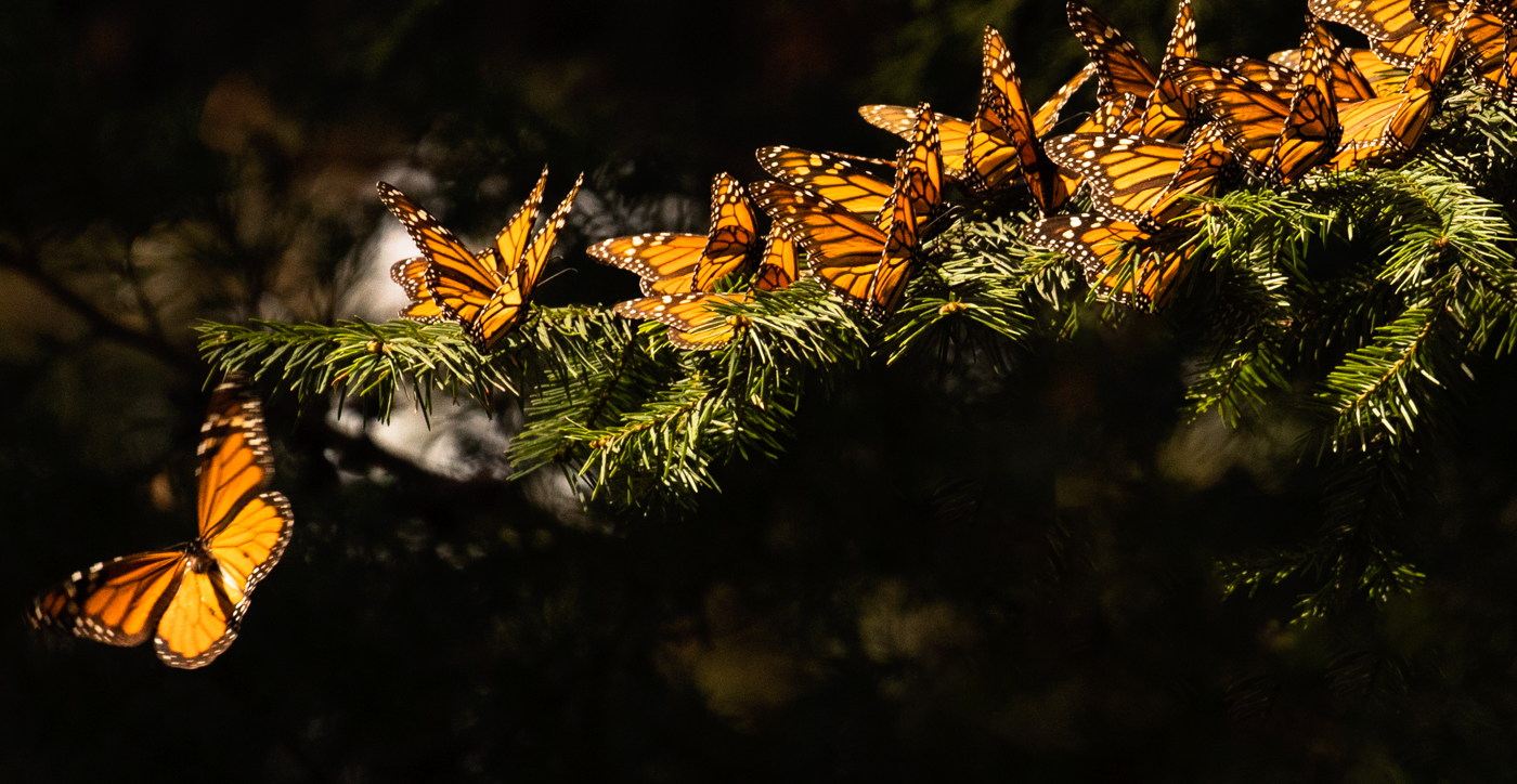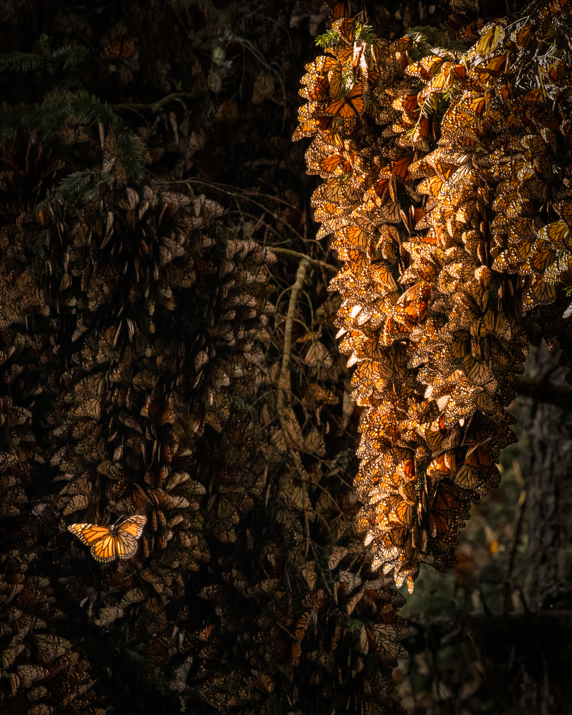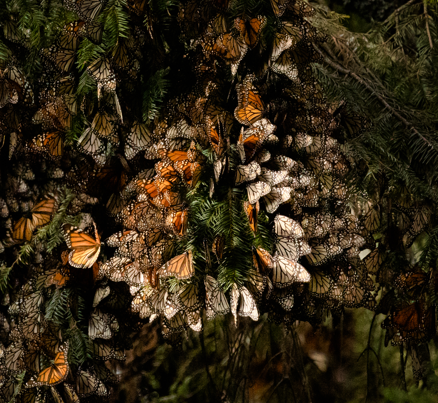 Millions of butterflies in fir trees in Mexico.