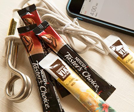 My advice to those like me who tend to shun crowds; get up well before sunrise. If coffee is not yet served and you are an addicted caffeine hound, bring your own. Having learned that Europeans don’t dump mass quantities of java down their throats like Americans, I pack my own Starbucks single-serve instants and a plug-in water heater element. You can make coffee in a water glass.