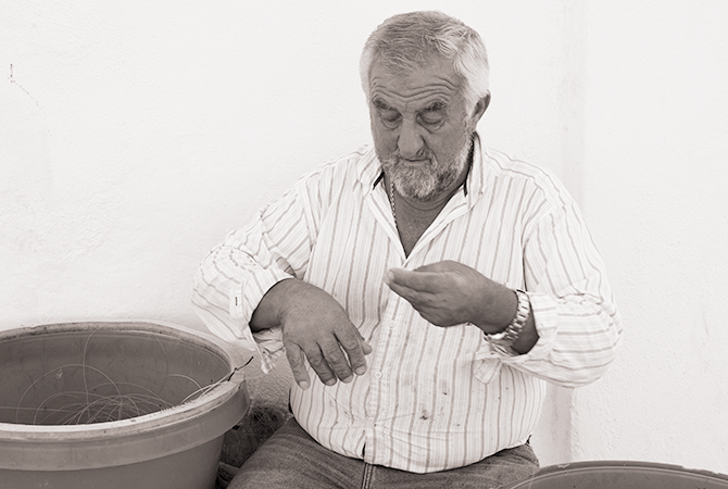 I quietly interrupted this fisherman and asked if I could photograph him mending his net. He nodded approval.