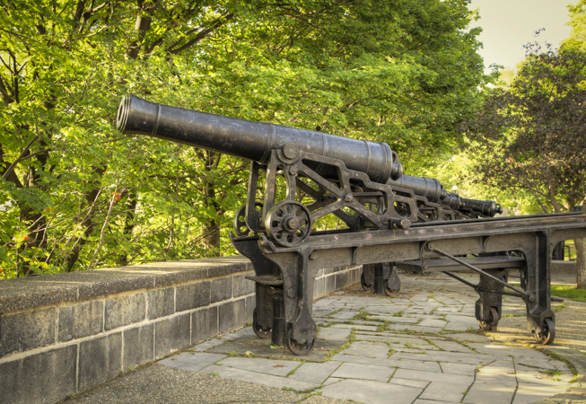 Quebec City was founded in 1608 and was under siege from the British pretty much from the start. The defensive technology of the time was the enormous stone wall and Quebec City boasts the only such city wall remaining in North America. It is clear that this city was a fortress and it’s perched up on high ground. Along Rue des Ramparts a long row of menacing, black, 17th century cannon and mortars look down on the port below. Just outside the city wall is the historic site “The Plains of Abraham,” where the French lost Quebec and most of their land on the North American continent to the British in the French and Indian War in 1759.