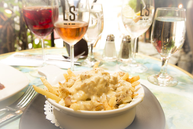 Then there’s poutine. This mainstay of French Canadian cuisine starts with fries and layers on cheese curds and brown gravy. There are variations and our favorite, from restaurant Le Lapine Sauté, added rabbit (lapine) and substituted a mustard sauce for the gravy. Really rich, this is a good dish to share.