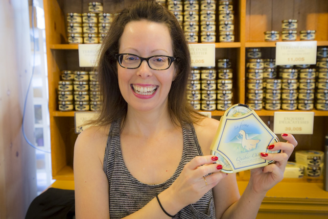 At the local farmer’s market, Le Marché du Vieux-Port de Québec, this charming woman offered us a sample of goose foie gras.