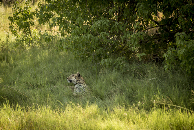 A leopard lounges in the shade right outside of camp. Tourism in Botswana, especially in the private concessions is high end, low impact with lots of land and few tourists. These things give the visitor seclusion, privacy and space…and guess what? Animals love that stuff too.