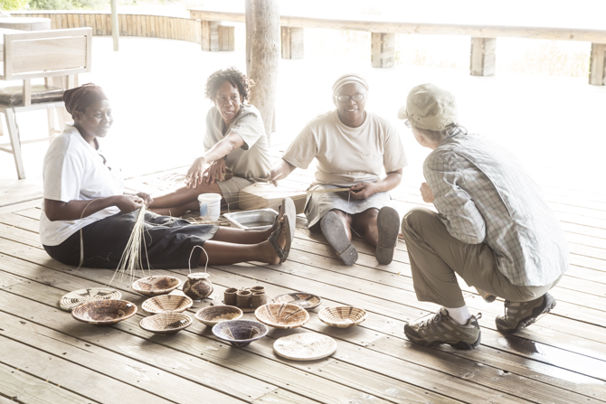 At King’s Pool Camp local women weave baskets for souvenirs.